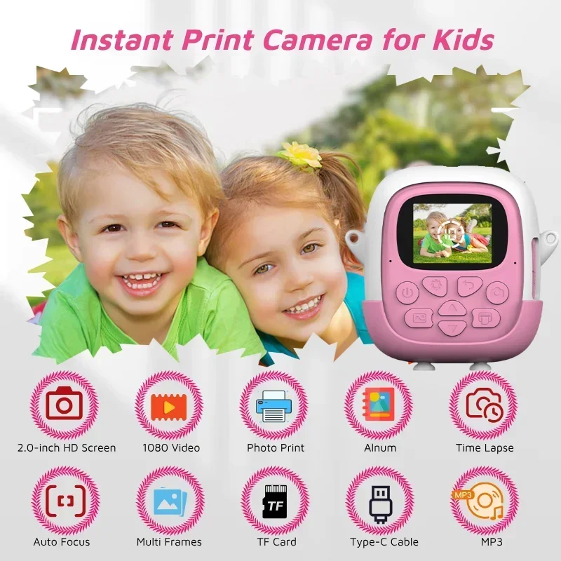 Available in Pink and Blue, this durable, portable camera is designed for children aged 5 to 12. It makes an exceptional gift for birthdays, holidays, or any occasion. Each set includes the camera, thermal photo paper, and a lanyard to prevent loss, ensuring your child can safely document their world.